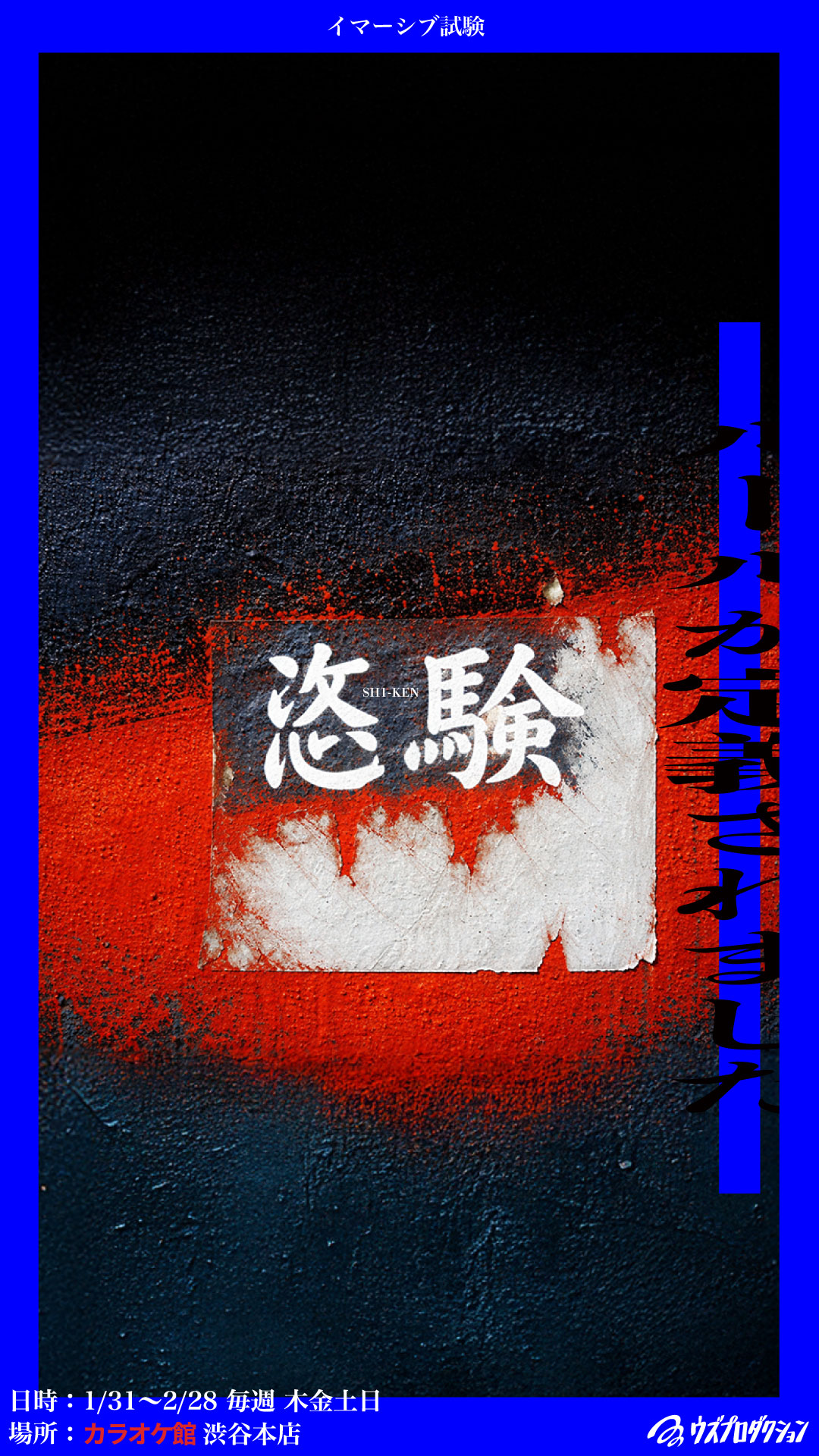 カラオケルームを舞台に行われる、体験型の試験イベント。参加者は、複数の部屋を巡りながら、各部屋に待つ試験官から出題される試験に挑む。